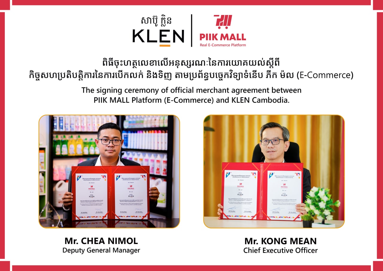ក្រុមហ៊ុន KLEN Cambodia និង PIIK MALL មានប្រម៉ូសិនផ្តល់រង្វាន់ដ៏ សន្ធឹកសន្ធាប់ ក្នុងឱកាសសហការណ៍ ជាផ្លូវការខាងមុខ!
