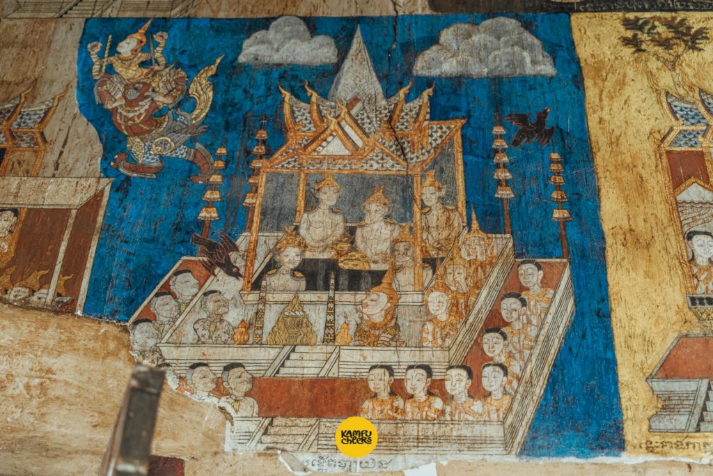 នៅលើជញ្ជាំងព្រះវិហារផ្នែកខាងក្នុងមានសិល្បៈដ៏រស់រវើកល្អវិចិត្រគឺគំនូរបុរាណរឿង «រាមកេរ្តិ៍» ដែលជារឿងល្បីល្បាញនៅអាស៊ីអាគ្នេយ៍ គូរនៅរវាងឆ្នាំ១៩២០-១៩២៤ ដោយជាងឈ្មោះ ប៉ិល និងក្មួយរបស់គាត់ឈ្មោះ ឌិត។ ជាងគំនូរទាំង២នាក់នេះ គឺជាជាងធ្វើណាំងសម្រាប់ល្ខោនស្បែកធំ ទើបគំនូរមានទម្រង់កាយវិការបែបដូចស្បែកធំ។ ចំណែកនៅផ្នែកខាងក្រៅមានចម្លាក់លៀនយ៉ាងរស់រវើកនៅលើទ្វារ និងបង្អួច ដោយលោកកុសលបានបញ្ជាក់ថា ព្រះវិហារដ៏ចំណាស់មួយនេះធ្លាប់មានការជួសជុលតាំងពីសម័យអាណានិគមបារាំងមកម្ល៉េះ។